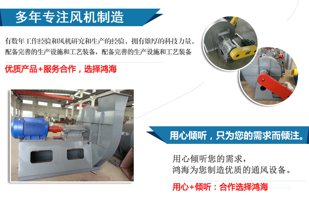 佛山市鴻海風機有限公司是一家集數年工作經驗和生產經驗的技術精英,風機研究,擁有雄厚的科技力量,配備完善的生產設施和工藝裝備,建立嚴格的質量保證體系,本公司專業從事各類通風設備,通風工程和環保機械的研究開發,設計制造和配套使用。主要產品有:一般離心式通風機、高壓離心通風機、爐用鼓(引)風機、高溫風機、除塵風機、不銹鋼風機、谷物粉末輸送風機、空調風機、軸流式通風機、混流式通風機、屋頂風機、低噪聲風機、柜式風機、防爆風機、耐腐、耐磨風機、及專用配套風機!
